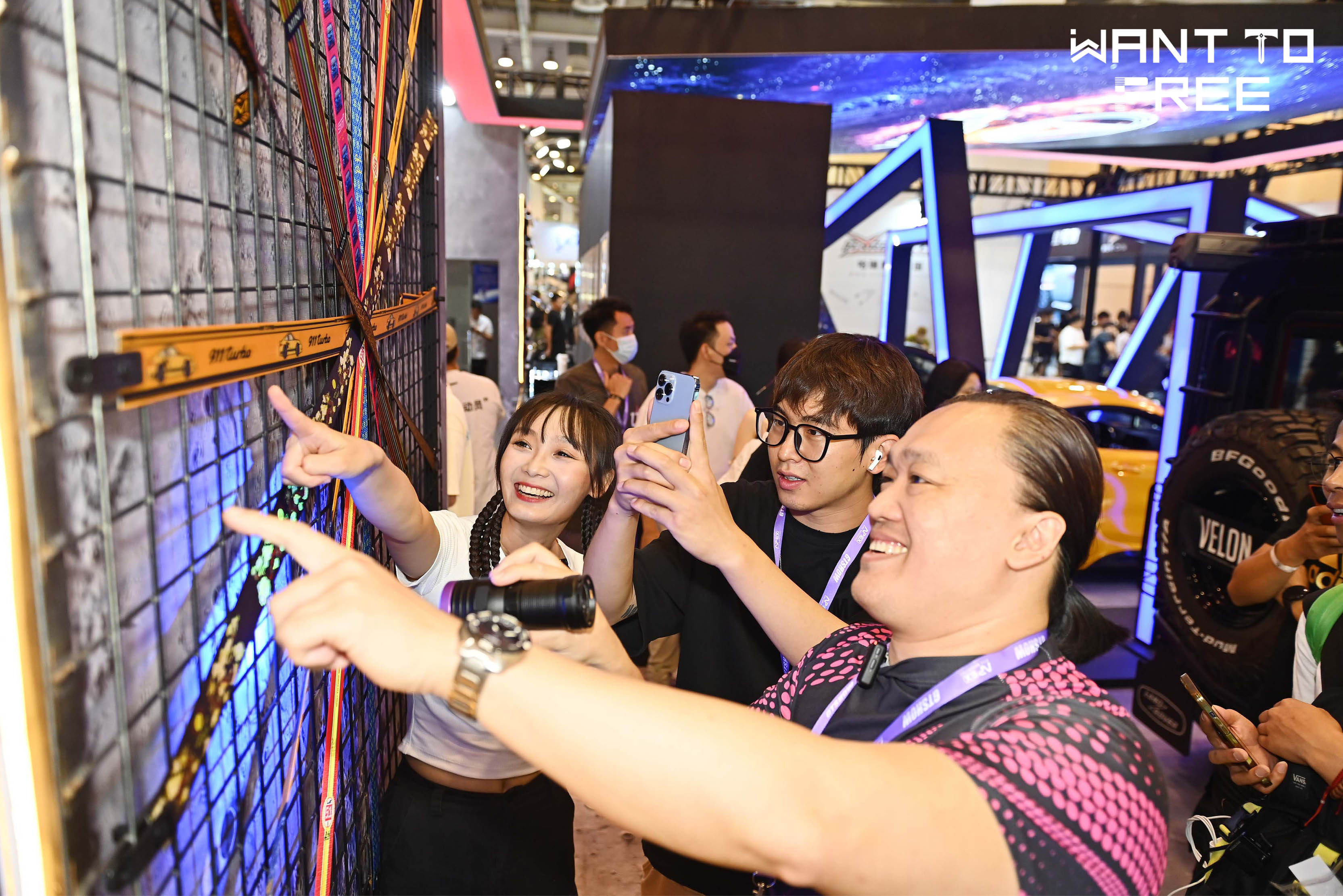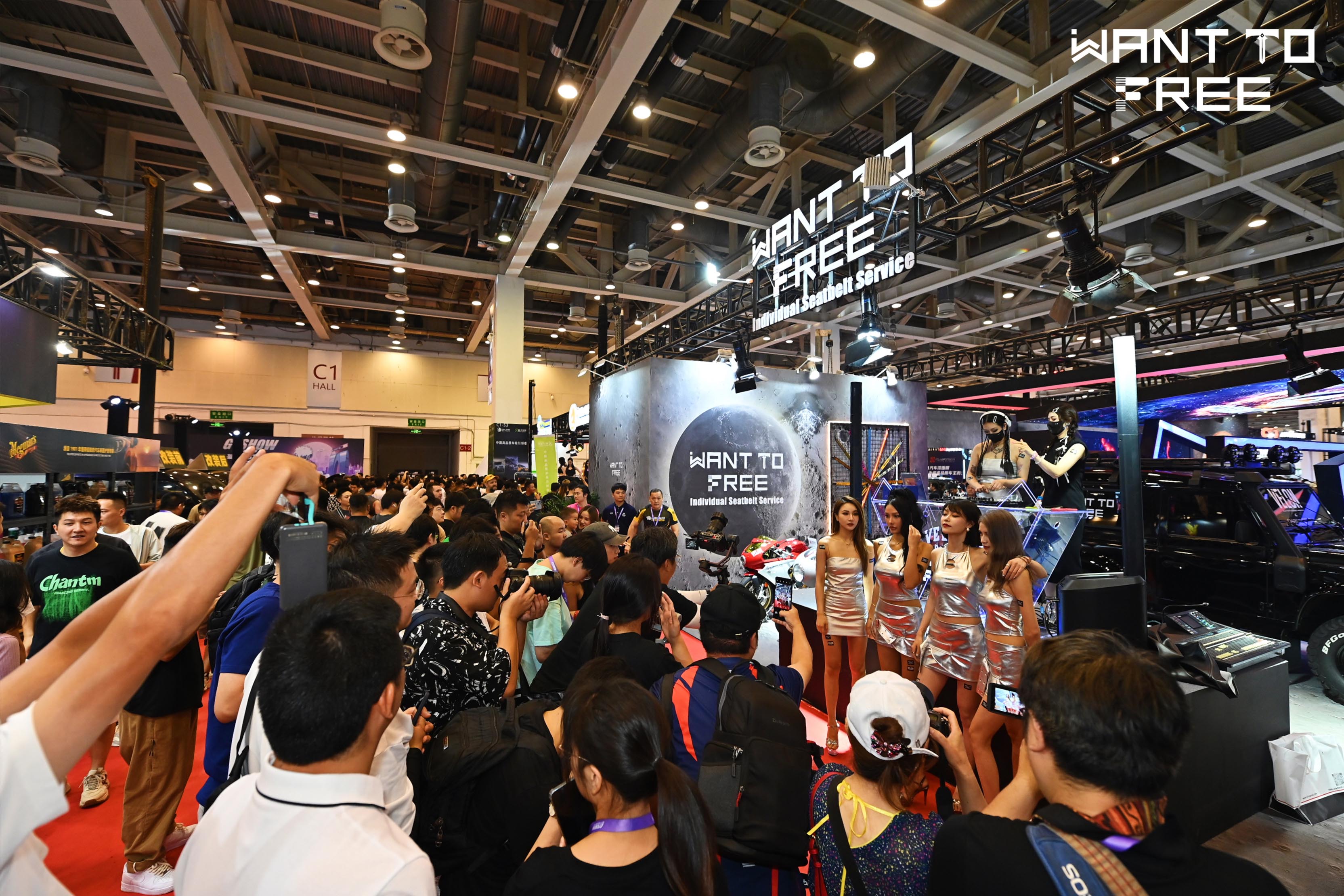 图2:WANT TO FREE个性化安全带展台前人山人海,热闹非凡。