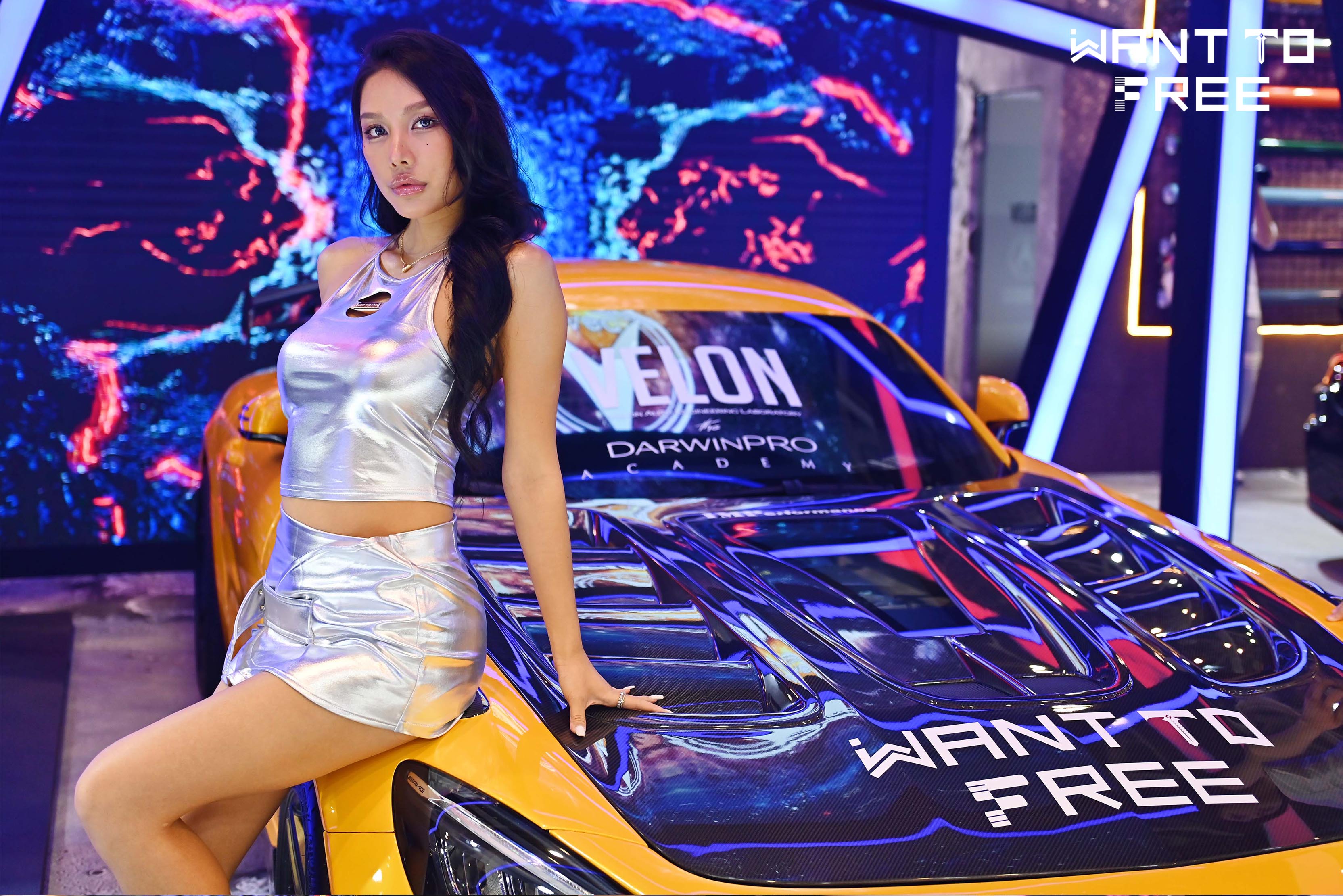 图7: 汽车KOL玩车女神宛如莅临WANT TO FREE个性化安全带展位拍摄节目。